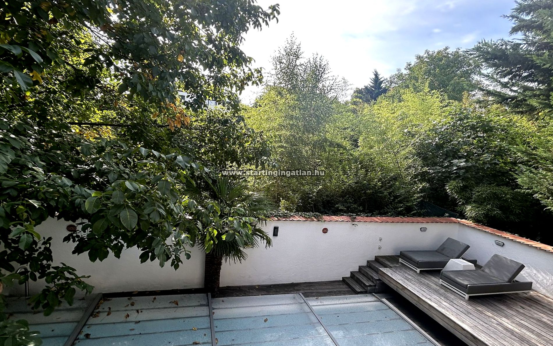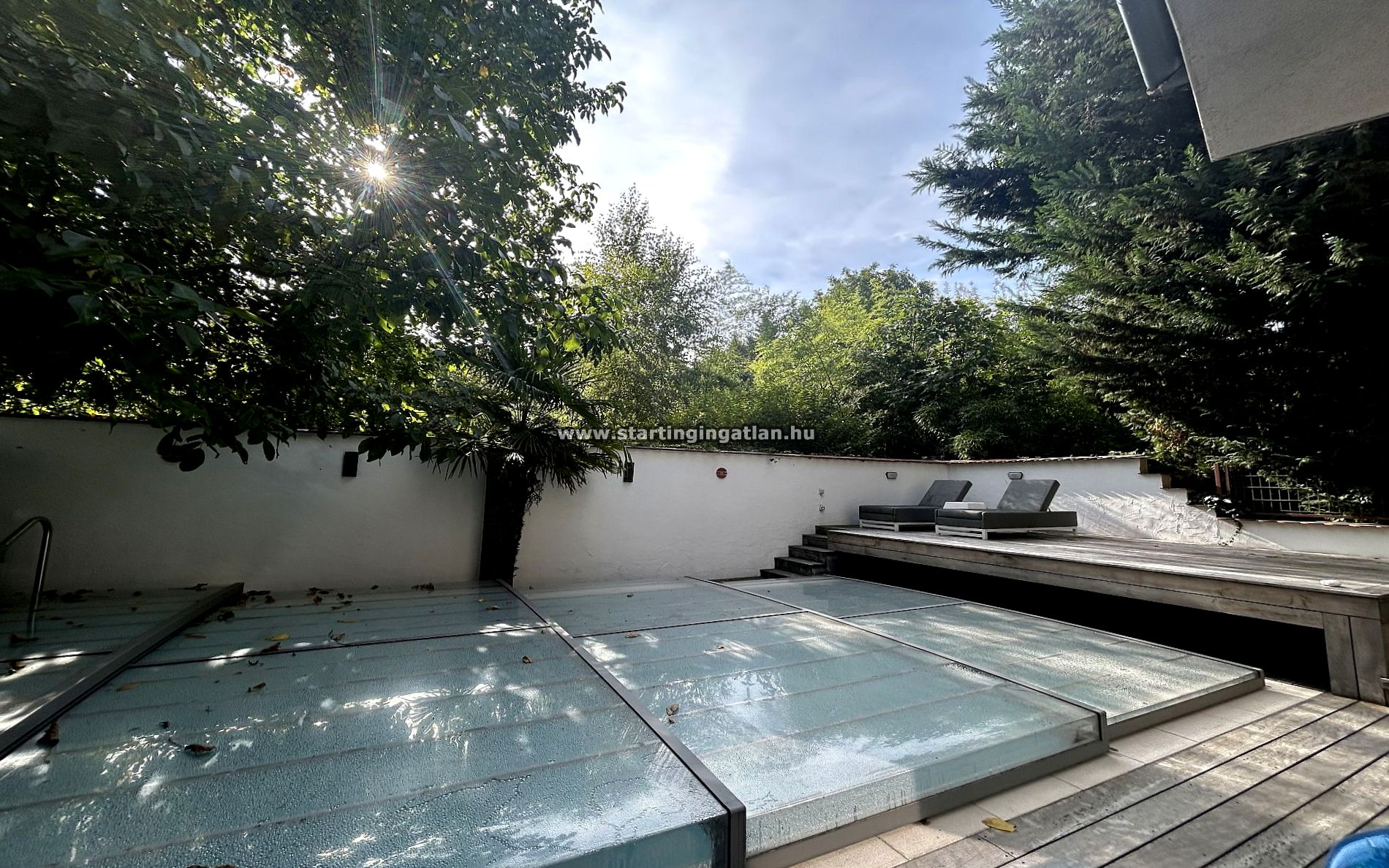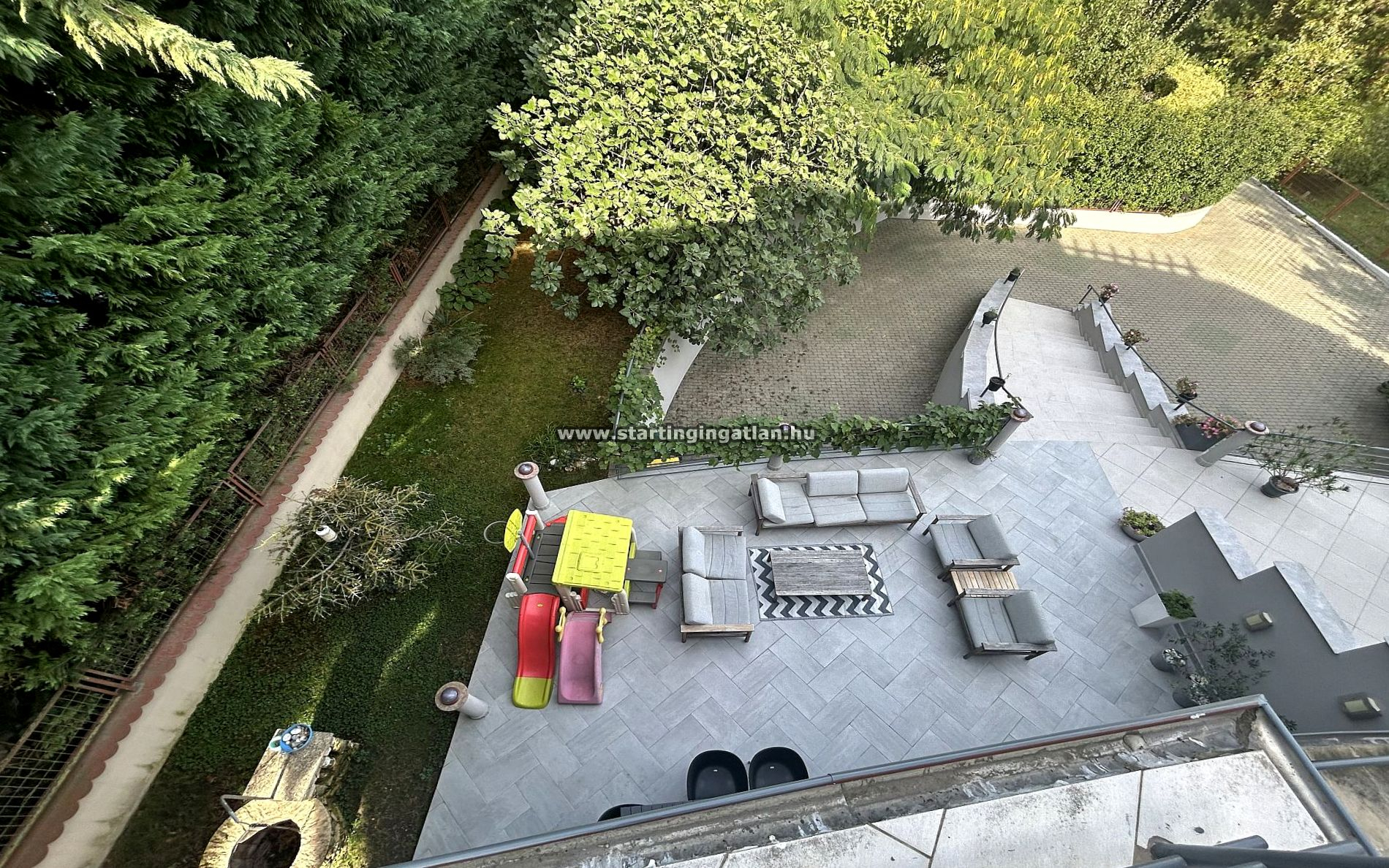 A hátsó kert tavasztól őszig egy külön világ: a nyakzuhanyzós, fűthető medence, a napozóterasz és a szolár zuhany a nyári pihenést teszi felejthetetlenné. Az automata öntözőrendszerrel gondozott kert fügével, málnával, szőlővel, örökzöldekkel és egy impozáns magnóliával és selyemakáccal díszített, a kővel burkolt, 51 m²-es első terasz pedig akár nagyobb társaságok vendéglátására is ideális.